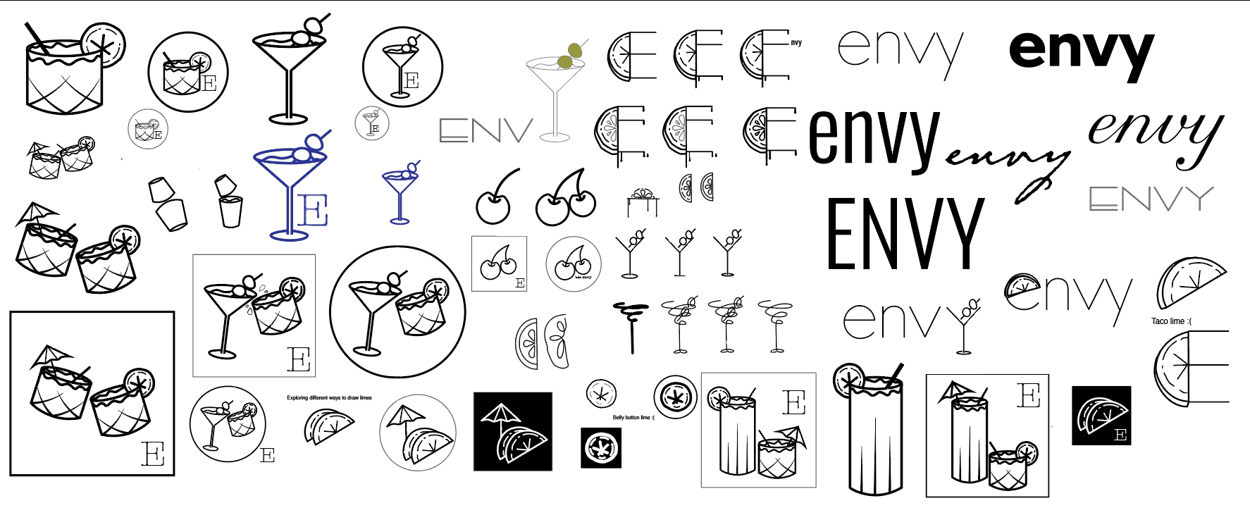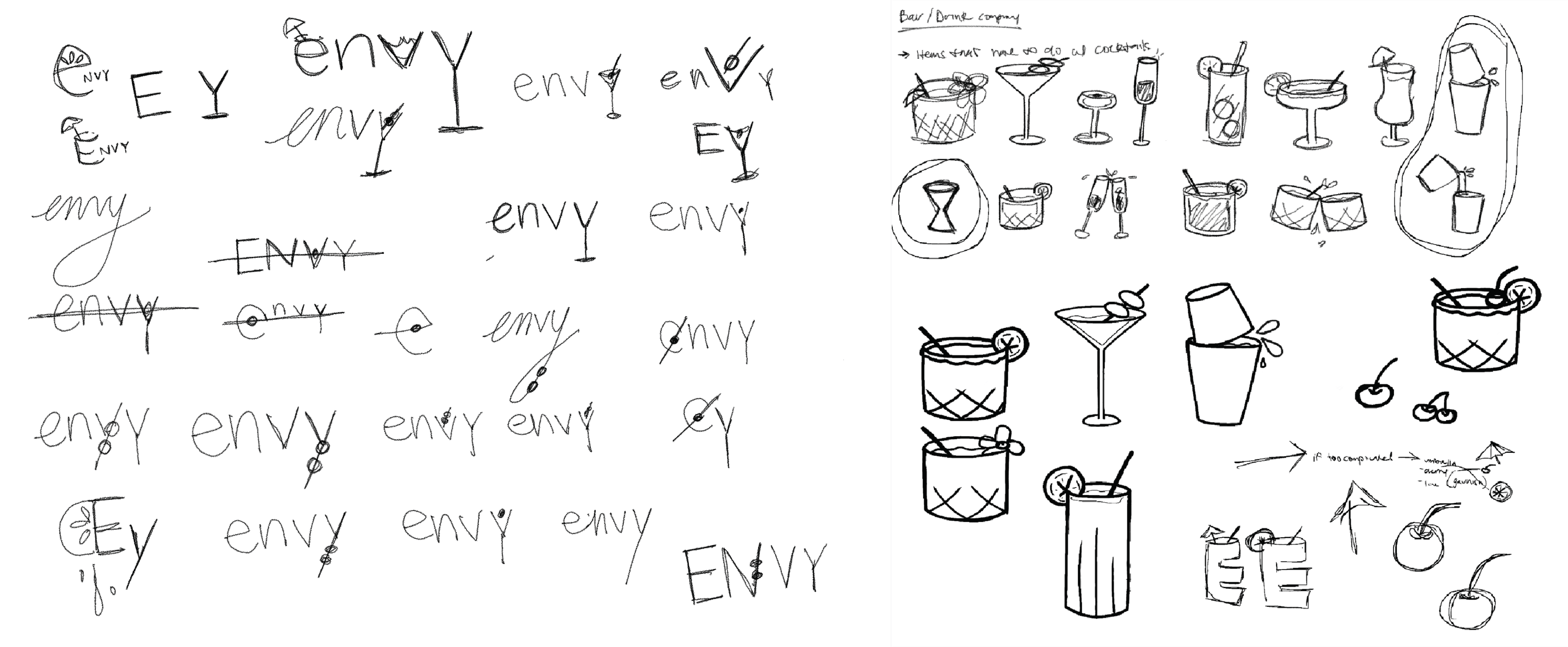These sketches encompassed diverse styles, including minimalistic, realistic approaches, as well as an in depth study of the items bars use as initial exploration for potential imagery. The process of ideation was crucial in identifying a range of options for the logo's design.